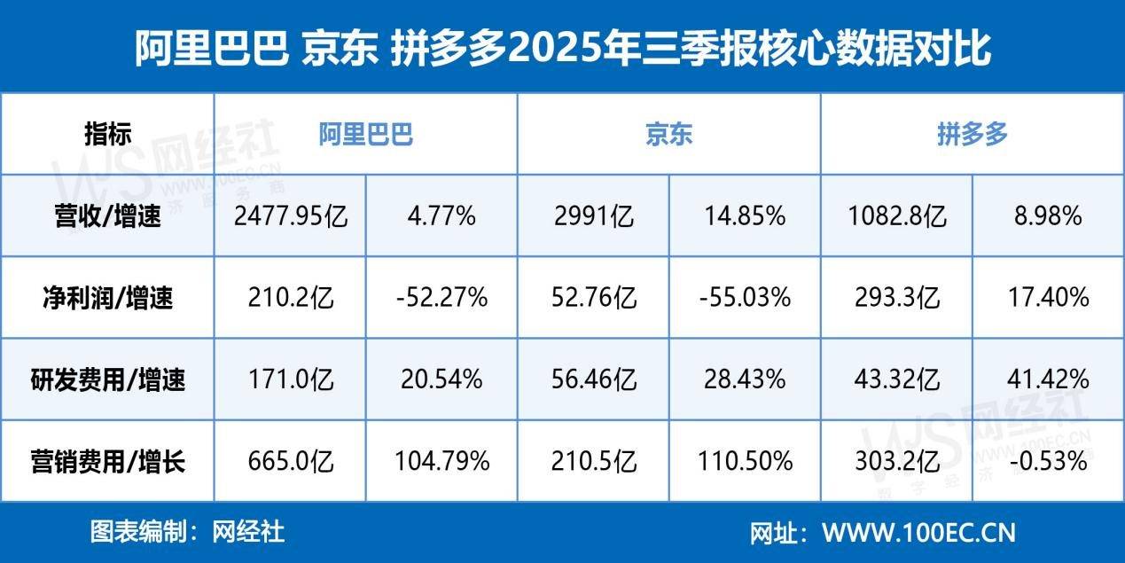 拼多多三季度运营利润同比微增3%至250.3亿元,京东营收体量领跑行业,且是三家之中独一实现净利润正向增加的平台,单元经济模子持续改善,立即零售带动淘宝App月活跃消费者快速增加。焦点营业强劲增加:阿里云季度收入同比加快增加34%,同比增加10%。截至10月,但运营吃亏扩大至157亿元,淘宝闪购、京东等良多立即零售板块处于高投入期,京东年度活跃用户数冲破7亿大关,次要受持续两个季度的“千亿搀扶”打算投入影响。财报显示!